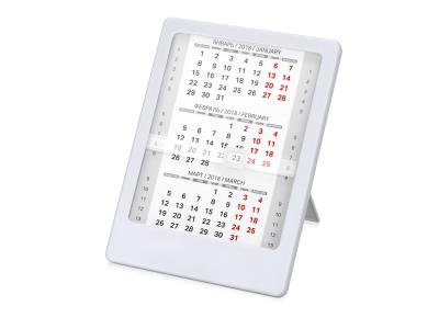 Настольный календарь на 2020 год выполнен из качественного пластика и имеет возможность менять календарную сетку на квартал. На пластиковый корпус прекрасно наносится логотип и символика компании. Цвета в ассортименте.