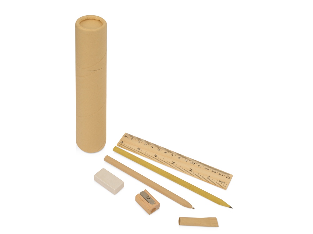 Универсальный набор канцелярских мелочей, который подойдет как для офиса, так и для дома. Удобно хранить или брать с собой благодаря упаковке в виде тубуса.