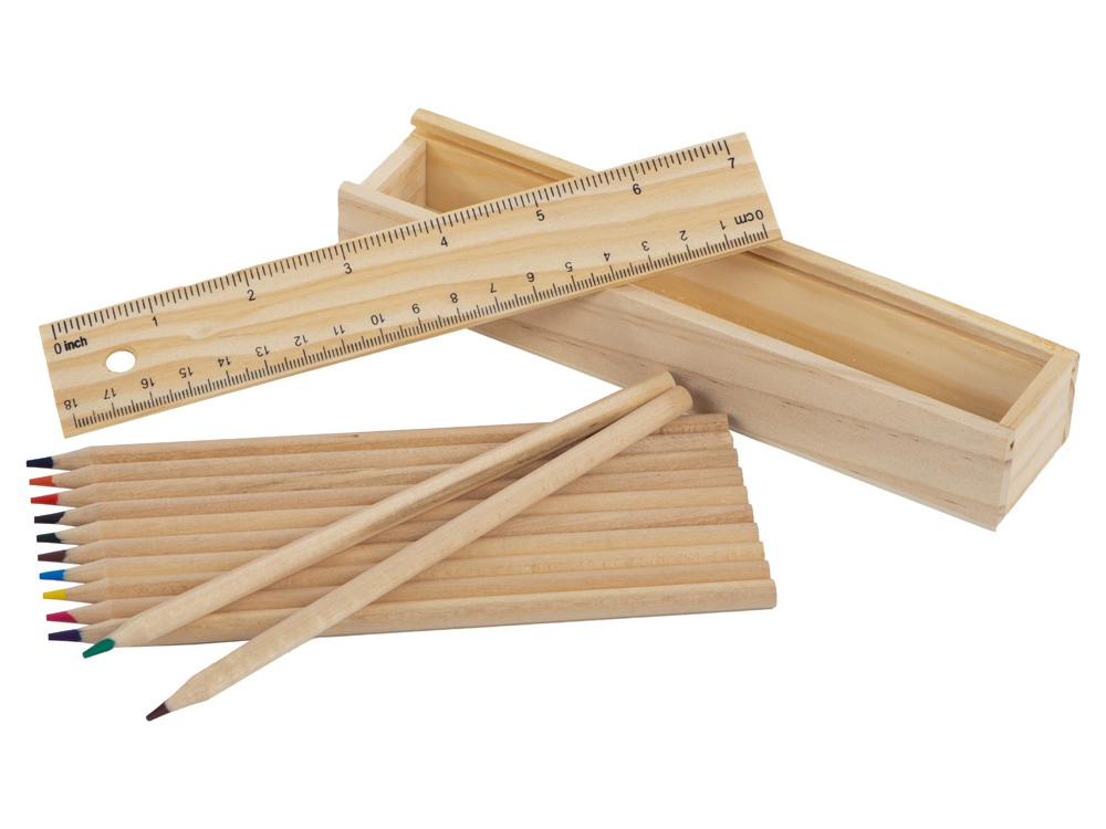 Набор из 12 карандашей в коробке с линейкой станет стильным и экологичным сувениром для людей творческих профессий.
