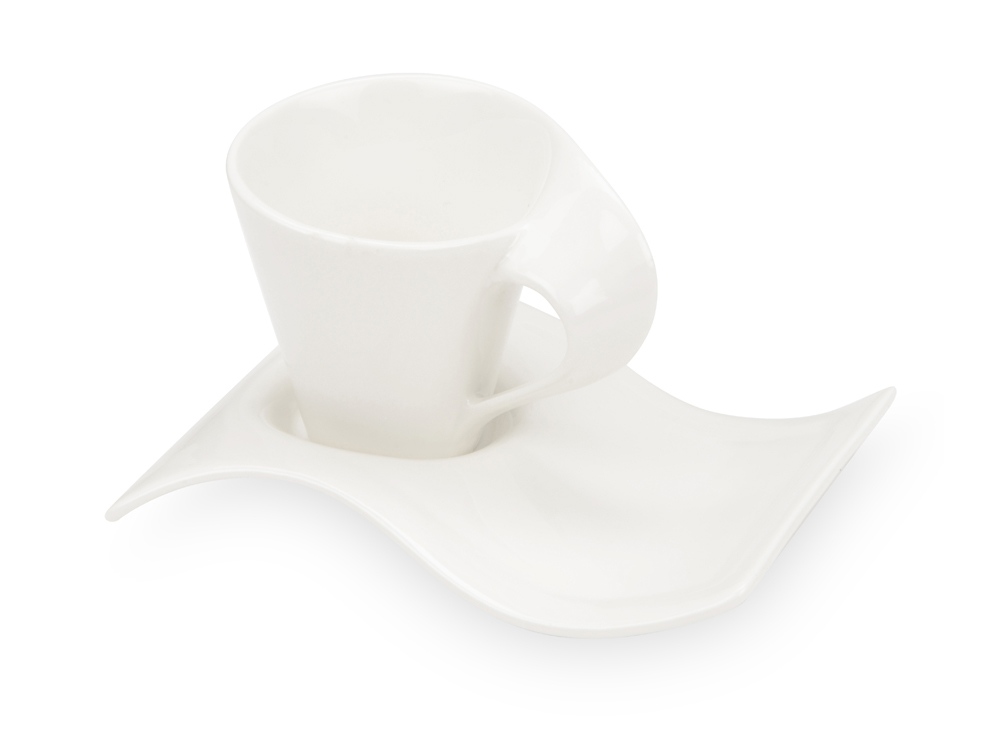 Элегантная кофейная пара, состоящая из чашки на 110 мл и блюдца, обладает грациозными формами и необычным дизайном. Фарфор цвета слоновой кости и смелость линий придутся по вкусу утонченным дамам.