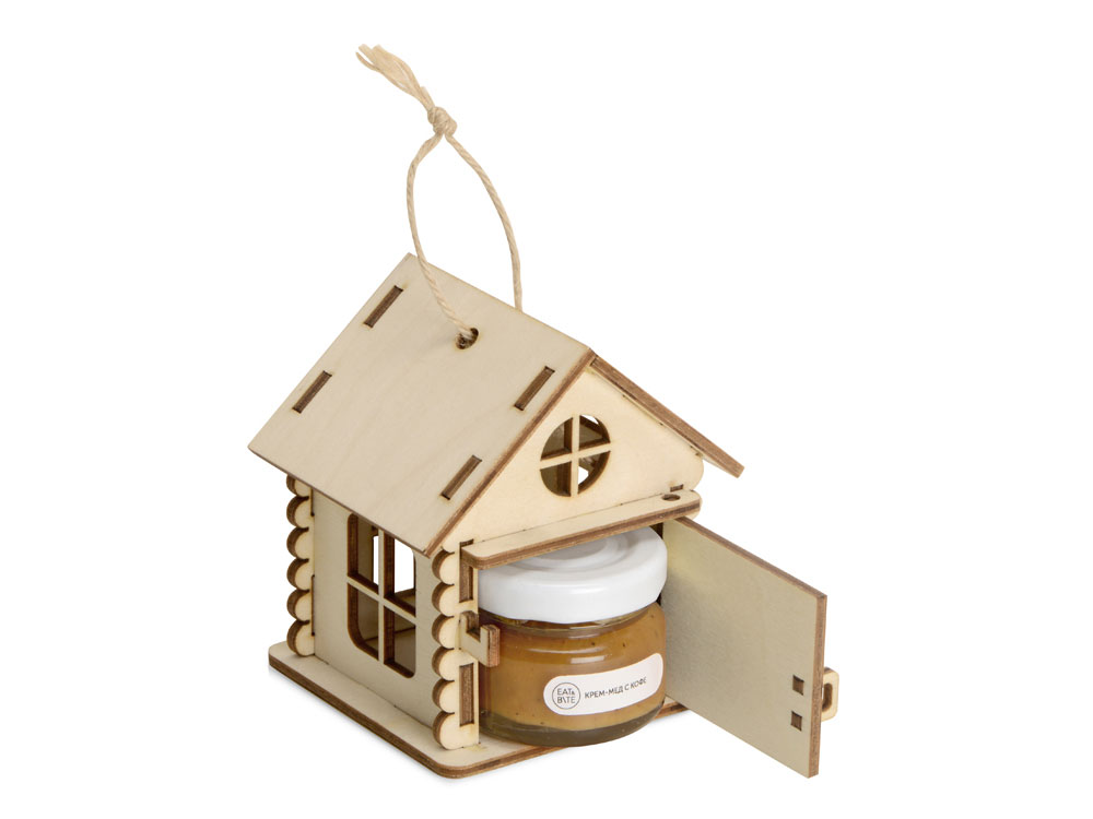 В домике открывается дверца, и в него можно поместить небольшую баночку с медом или вареньем. Оригинальная конструкция сувенира украсит любой интерьер, как в офисе, так и в квартире. Подарочная упаковка Домик позволит вам сделать оригинальный и запоминающийся подарок для руководителя или коллеги.