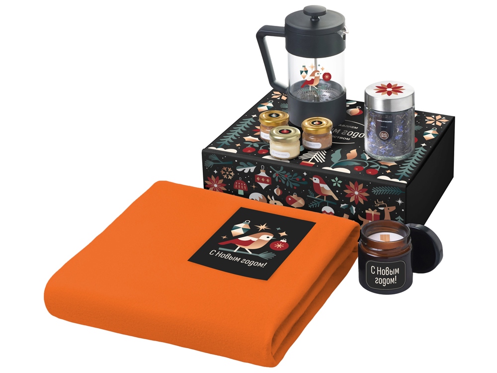 Подарочный набор Re:Moments с пледом, френчпрессом и медом