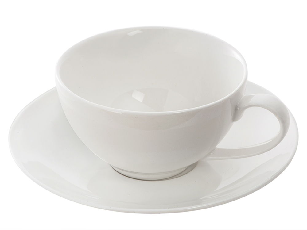 Фарфоровая чайная пара состоит из чашки с удобной ручкой и блюдца, которые одинаково уместно будут выглядеть и в офисе, и дома. Объем кружки — наиболее популярный и востребованный, 210 мл. Оба элемента пары можно брендировать.