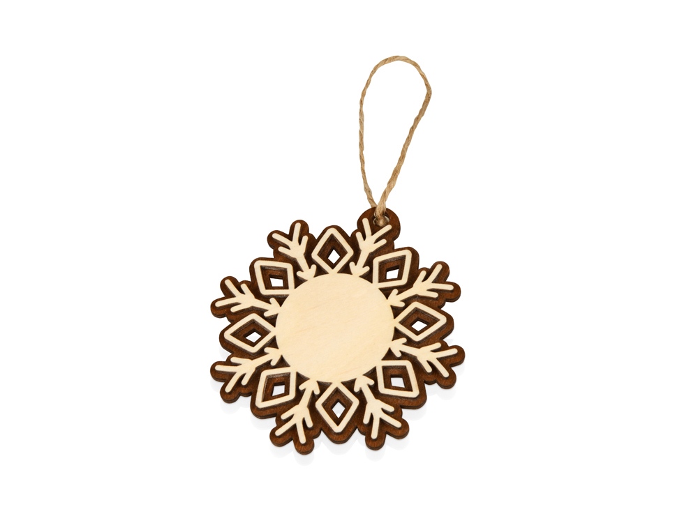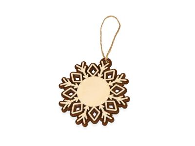 Оригинальное елочное украшение в виде снежинки. Подвеска выполнена из березовой фанеры и тонирована в коричневый цвет. Это елочное украшение – отличный вариант для экоелки. Не хотите использовать елочные игрушки из пластика или стекла? Деревянные сувениры из нашего каталога станут отличным украшением, которые создадут атмосферу уюта в вашем доме.