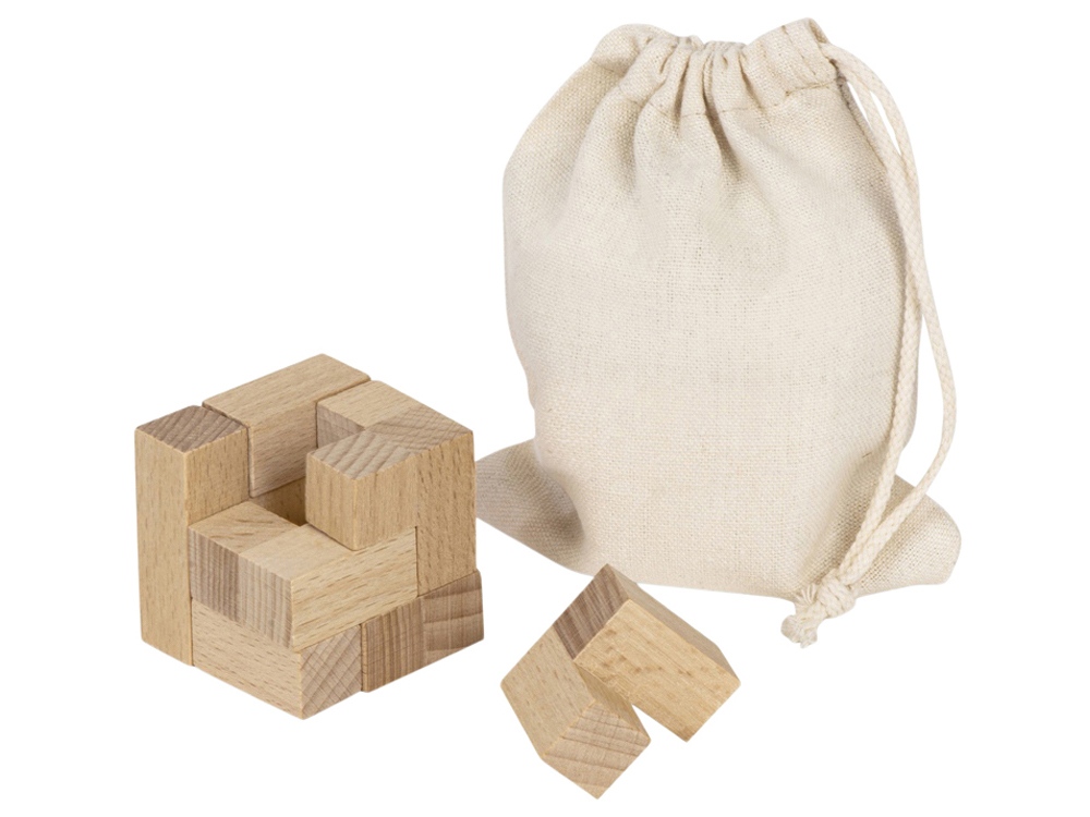 Состоит из семи деревянных деталей, поставляется в хлопковом мешочке на завязках. Кастомизация возможна, как на самих деталях, так и на мешочке.