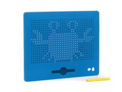 В комплект входит намагниченное перо и доска с ячейками, у которой внутри металлические шарики. И если поднести к одной ячейке перо, то одна из этих бусинок сразу поднимется наверх и займёт место в отверстии. А на планшете как будто будет нарисована точка. Если же провести магнитным пером по доске – получится линия, контур, фигура, цифра, буква и даже полноценная картинка.