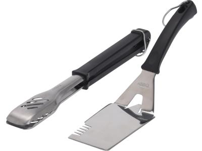 Набор Grill состоит из двух главных инструментов, необходимых для приготовления гриля и барбекю: лопатки и щипцов. Изделия выполнены из высококачественной нержавеющей стали. В щипцах есть специальные отверстия для жидкости. А на обоих инструментах - крепления-петельки, чтобы они всегда оставались под рукой во время барбекю.