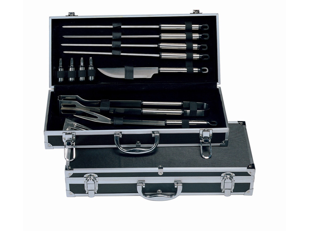 Набор для барбекю 12 предметов. 4 шампура, 4 шпажки для снятия шашлыка, нож, щипцы, вилка, лопатка. Шильд в комплекте 4,8 х 8,3 см.
