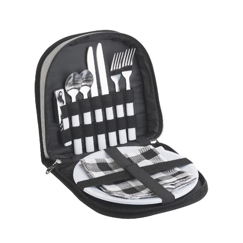 В набор входят: тарелки, ножи сервировочные, вилки, ложки, нож сомелье, салфетки.