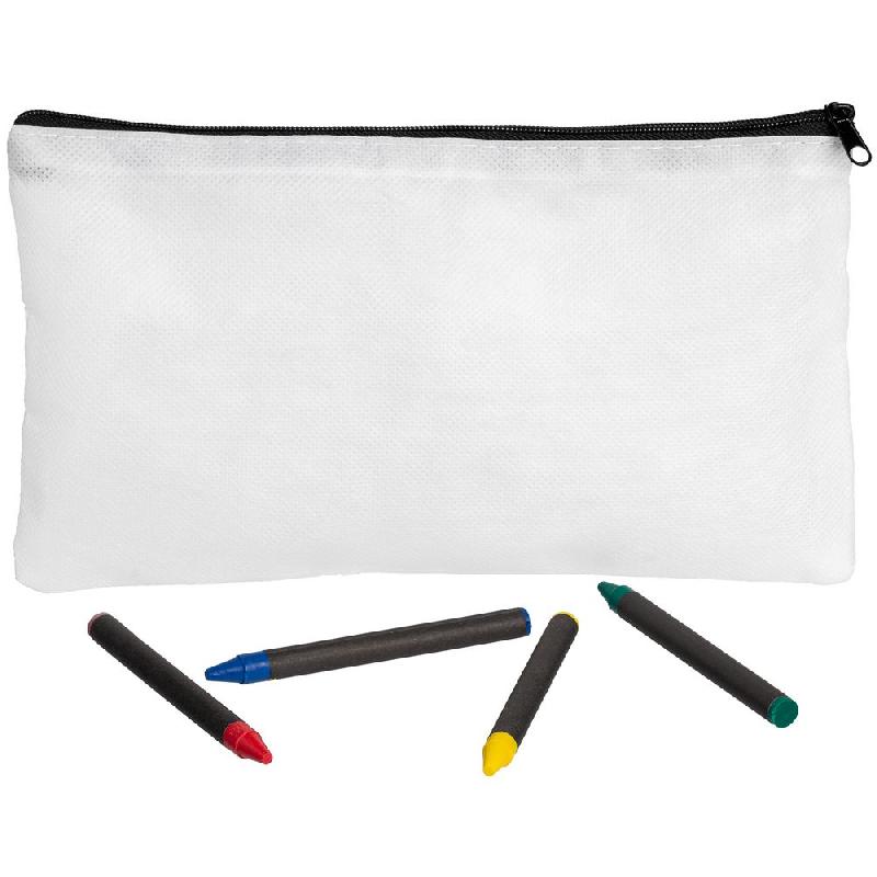 В наборе пенал-раскраска, 4 восковых мелка.